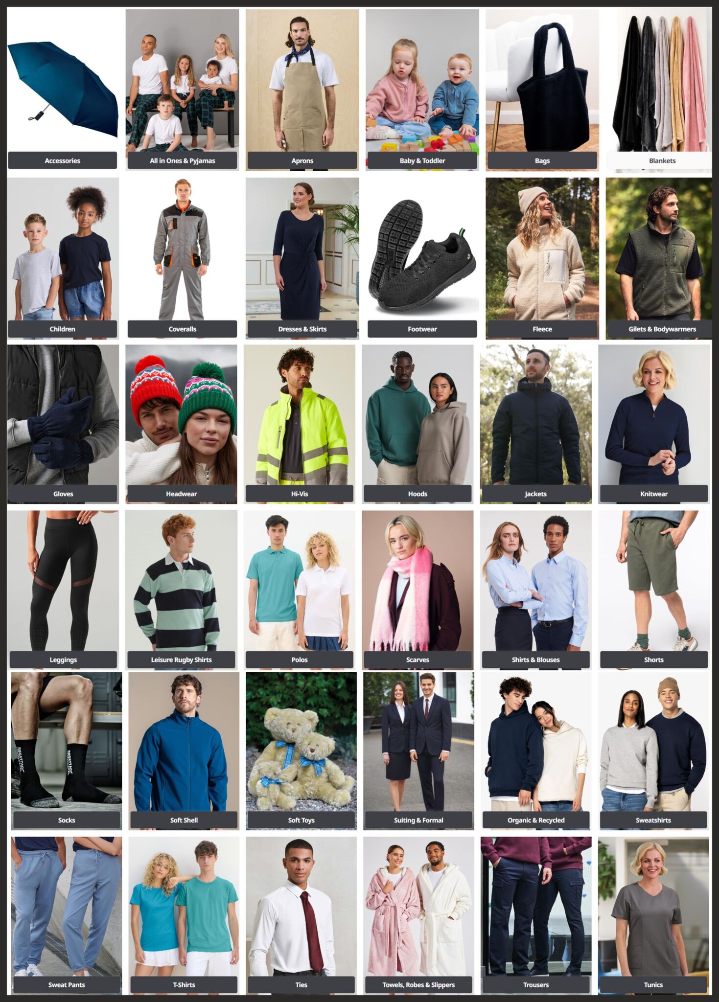 Select the sizes and quanities you wish to order, then send to us for a quote.